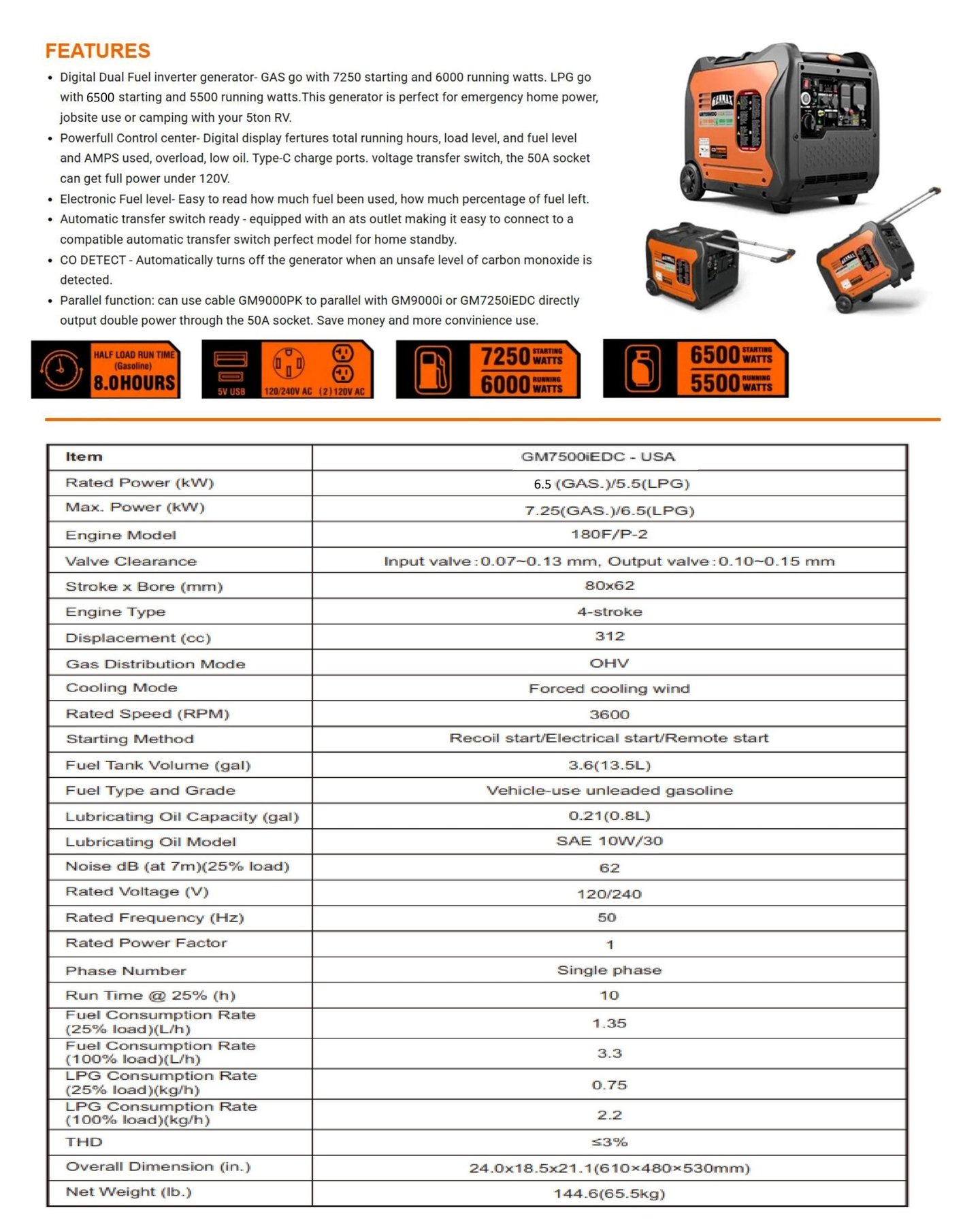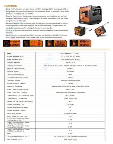 1. DUAL FUEL QUIET 3.5 to 6.0 KW